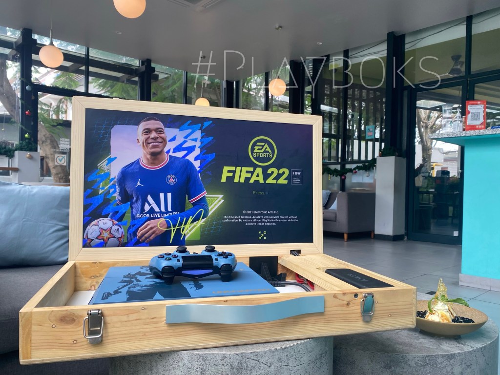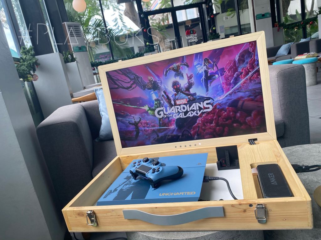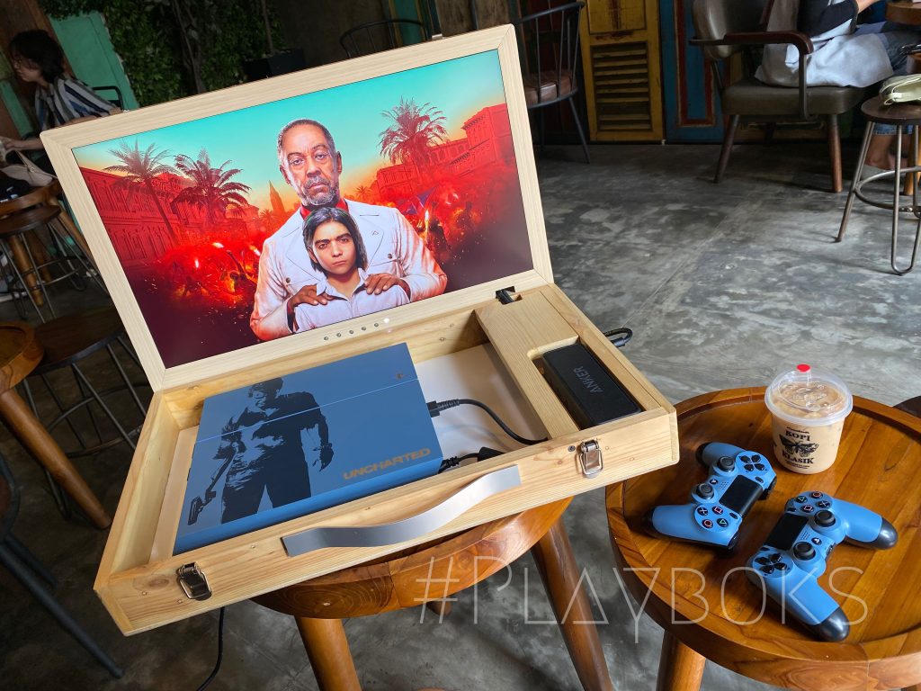 Playboks adalah Box portable untuk yang sudah memiliki Playstation 4 sendiri, atau berencana untuk membeli playstation 4, cukup utk menyimpan 2 stick Dualshock 4, 1 kabel power, 2 usb charger dan 1 playstation jenis fat, slim maupun pro.
