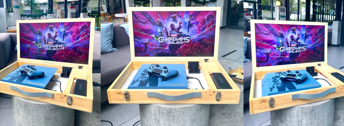 Playboks adalah Box portable untuk yang sudah memiliki Playstation 4 sendiri, atau berencana untuk membeli playstation 4, cukup utk menyimpan 2 stick Dualshock 4, 1 kabel power, 2 usb charger dan 1 playstation jenis fat, slim maupun pro.